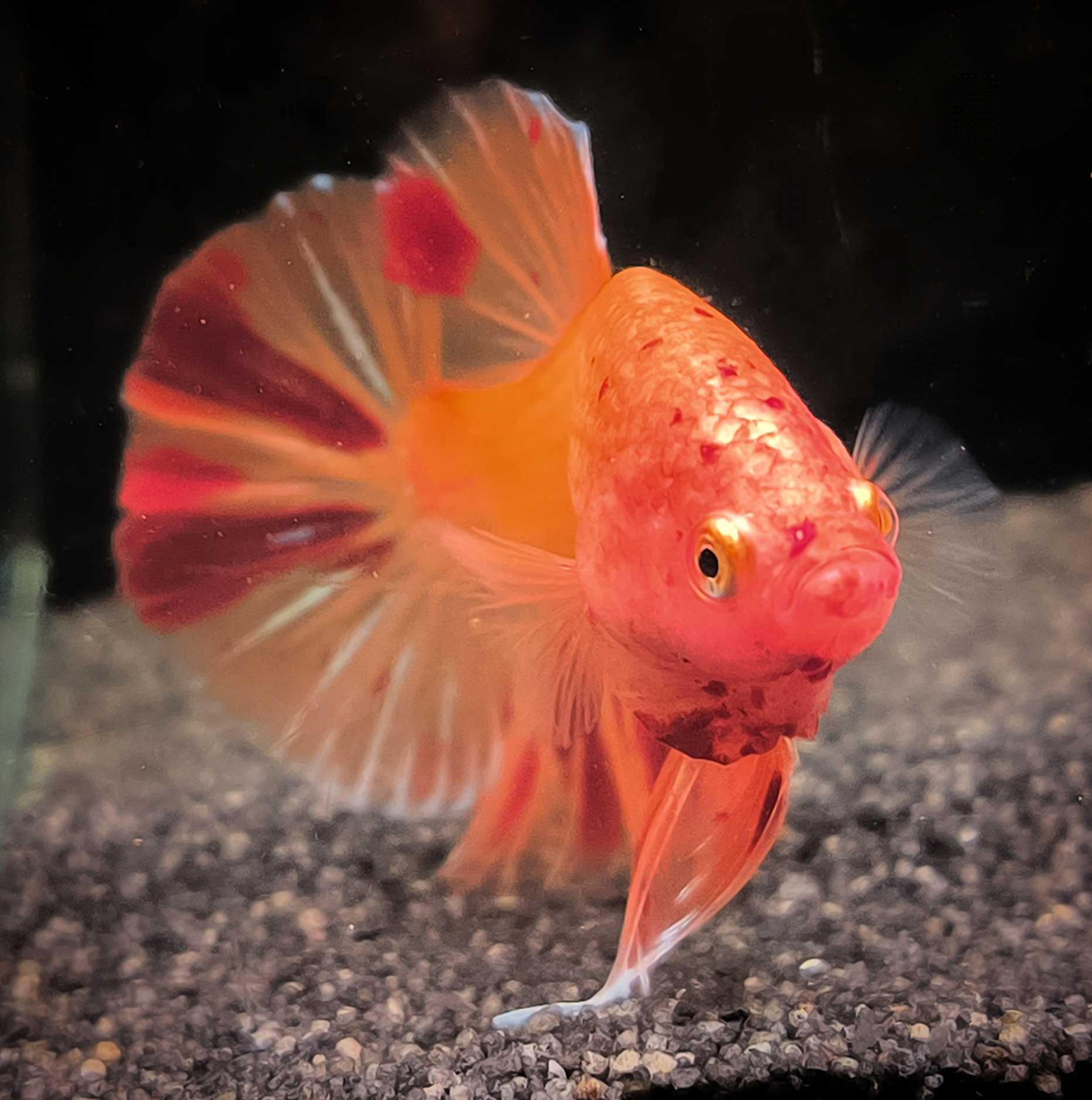 Unser Betta splendens "Eragon" ist ein Jungtier von Oktober 2025 und ist aus einer Multicolor Verpaarung. Er hat aktuell eine wunderschöne orange-rote Farbe .